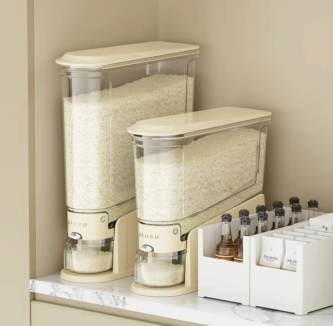 08. 米計量バケツ ワンタッチ給米10kg 密閉保 存防虫剤防湿プラスチック計量缶 キッチン収納ボックス 透明穀物保存容器 高品質耐久タイプ