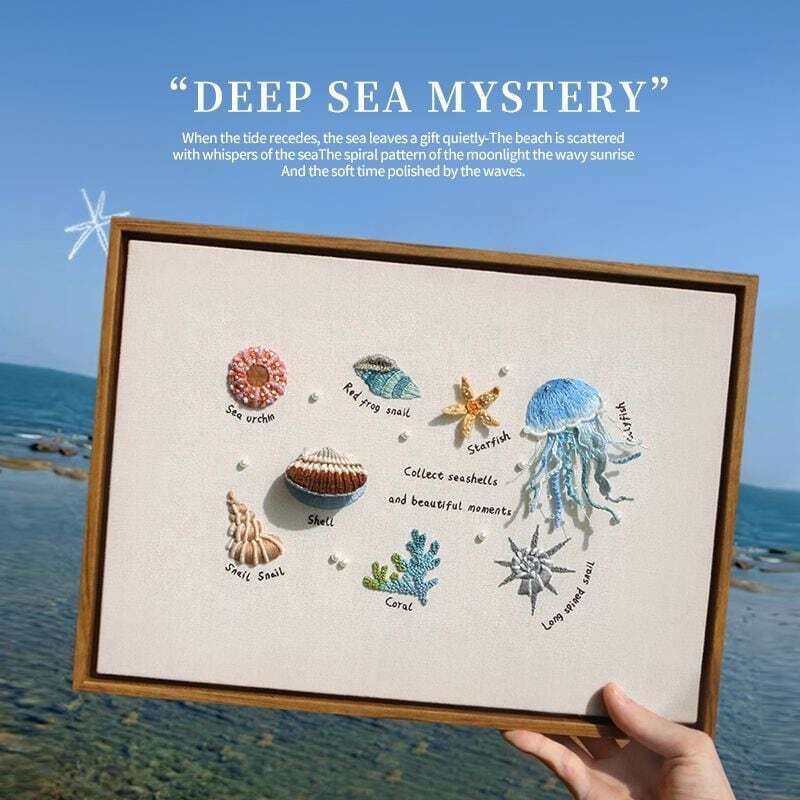 刺繍DIY材料キット 立体貝殻フォトフレーム 卓上置物/友人へのクリエイティブギフト