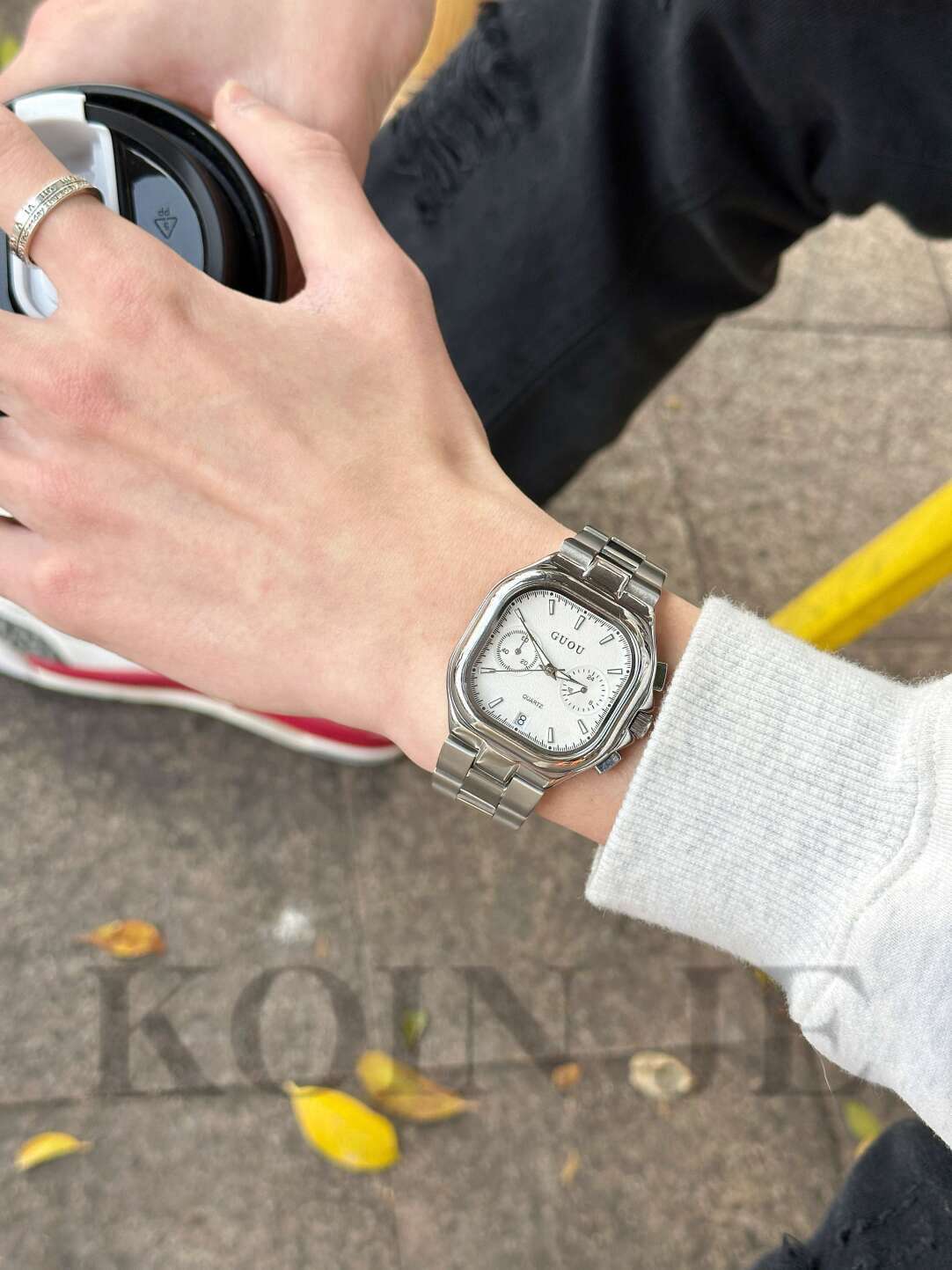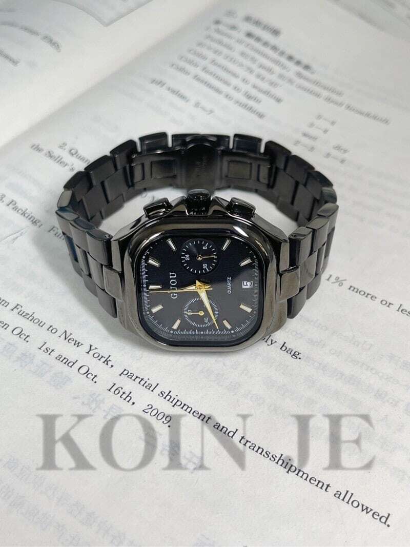 KOIN JEブラックナイト風のユニークな男性用腕時計、ステンレス製、女性にもおすすめ、ジェンダーレスカップルギフト
