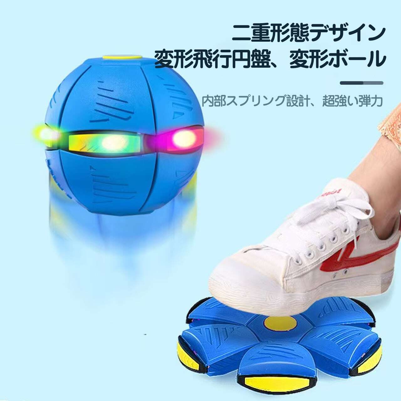 76.飛行円盤ボール、UFOマジックボール、バウンスボール、足で変形するボール、知育おもちゃ 室内外で楽しめるスポーツ、光る子供用おもちゃ