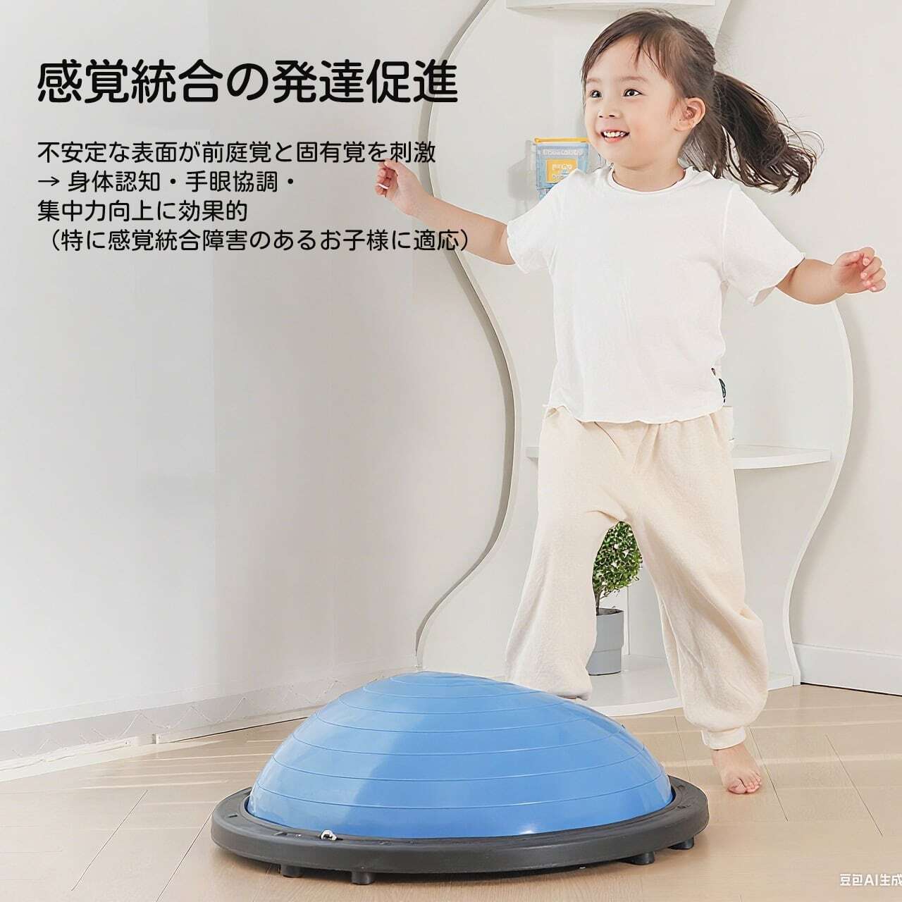 不安定な表面が前庭感覚や固有感覚を刺激し、身体認知・手と目の協調・集中力の向上を促進。感覚統合に課題のあるお子様にも最適。