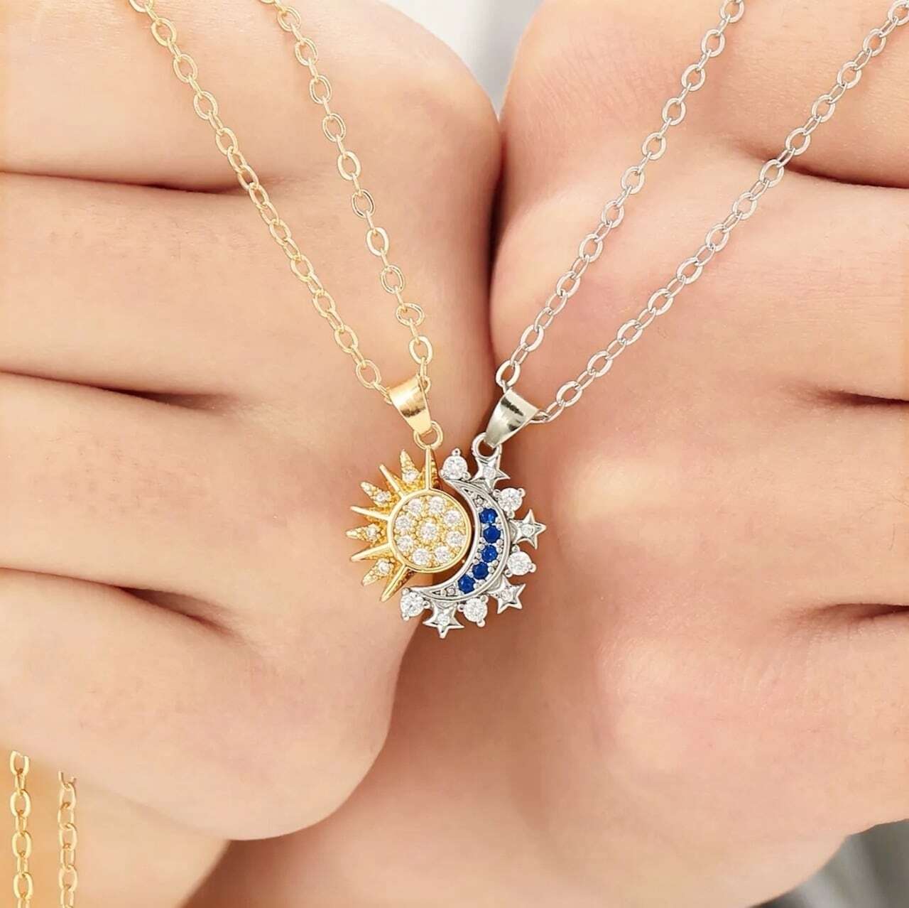 【親友同士の感情の絆】カップル用ネックレスとしてのほかに、その独特なデザインは親友が身につけるのにもぴったりです。太陽と月の組み合わせは、親友間の異なる個性が調和して共存することを象徴し、人生の道で互いに支え合い、照らし合うような存在で、親友間の友情を深めるのに最適なプレゼントです。