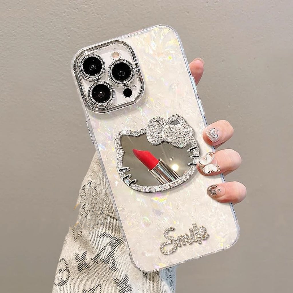 ハローキティ ミラー付き 貝殻紋様(スマホケース + ハローキティミラー + ストラップ)