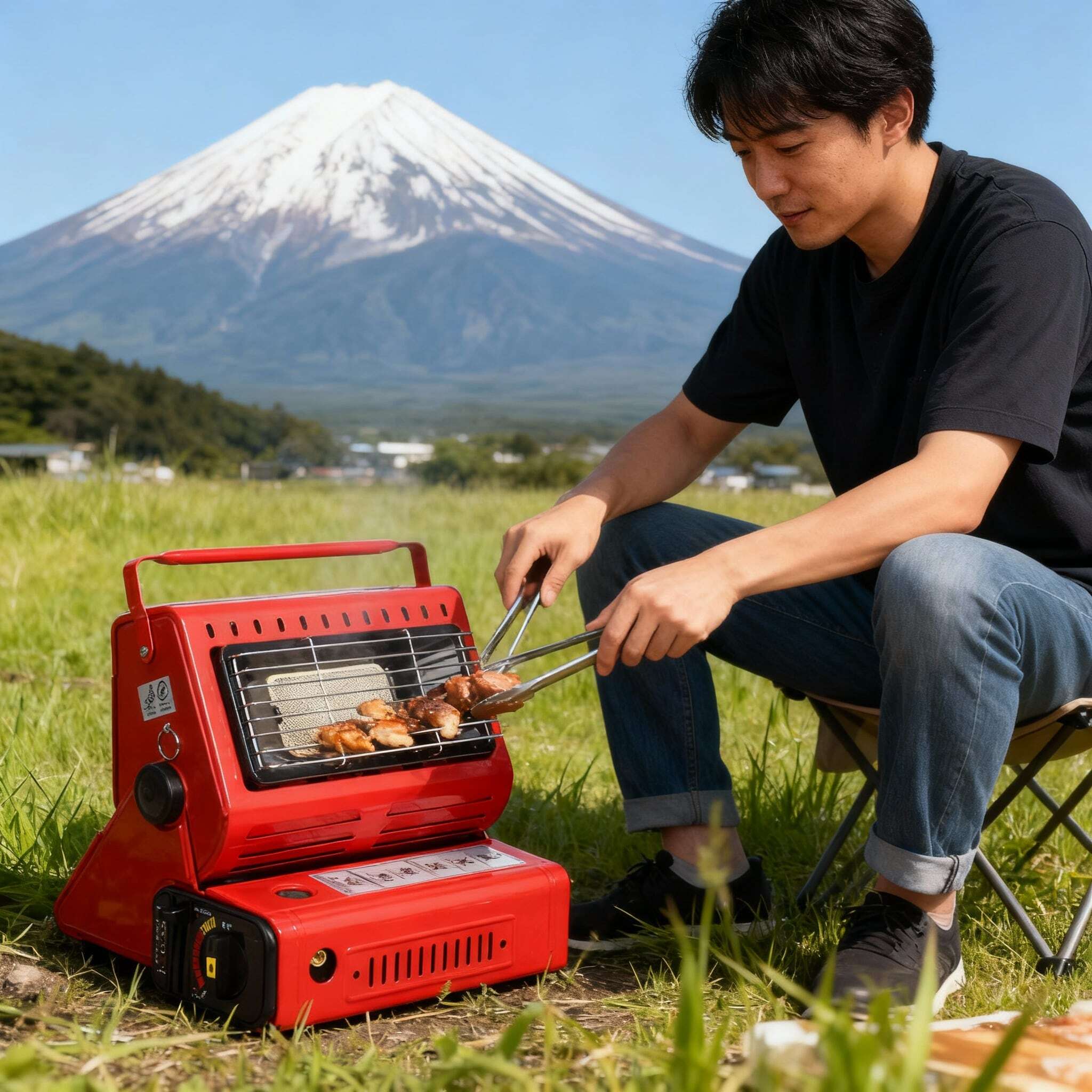 A96.携帯型アウトドアヒーター&バーベキューコンロ液化ガス対応ミニサイズで持ち運びが便利アウトドアやキャンプ、ピクニックに最適な2WAY仕様温暖な火力で寒い日にも快適に使えるコンパクトな手提げデザインで場所を取らず収納も簡単キャンプやバーベキューに必須のアイテム料理だけでなく暖房としても使える多機能性を提供安全設計で防風機能付き暖房と焼き料理の両方を楽しめる便利なアウトドア用グッズ