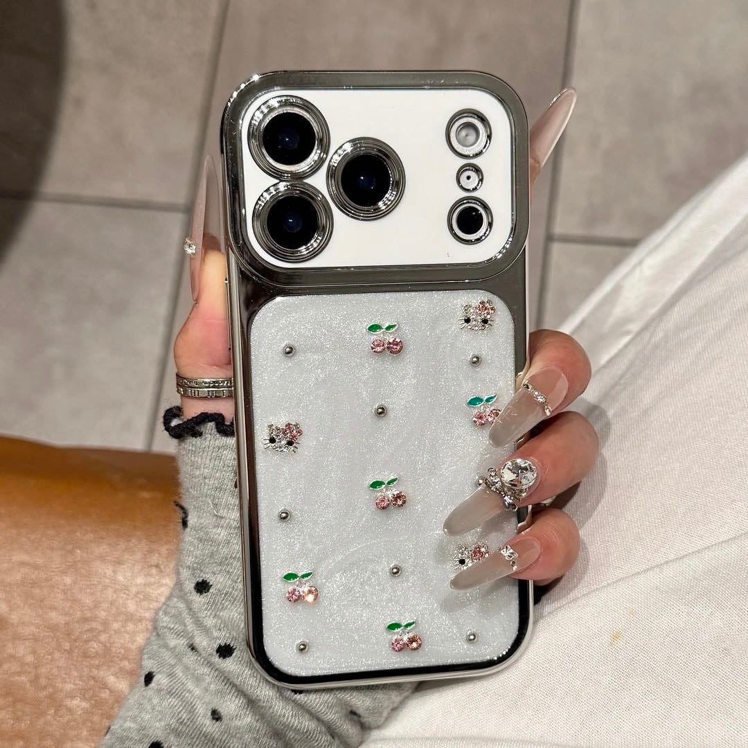 レジン加工のチェリーと猫デザイン iPhone用スマホケース