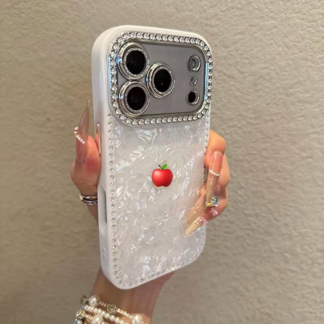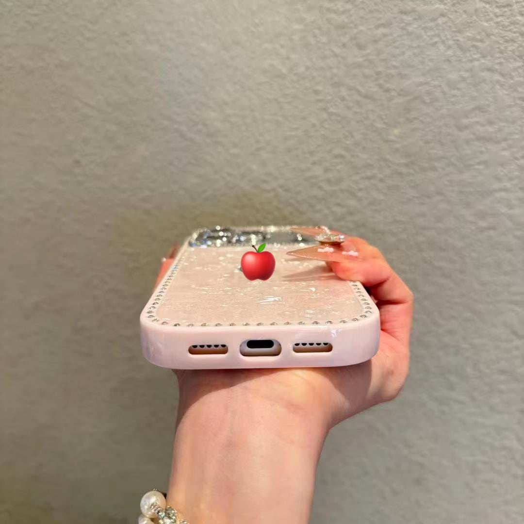 高級感あふれる貝殻模様の両面ダイヤモンド装飾、iPhone用ケース