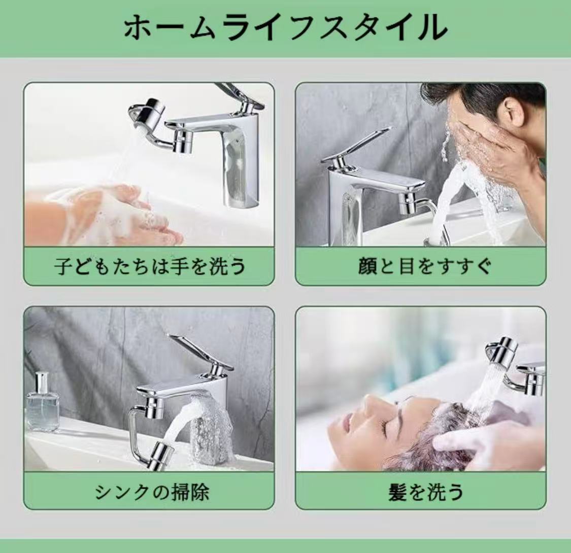 1080°自由回転:新しく強化された360°スイベル蛇口エクステンダーは、1080°ロボットアームのようなデザインと組み合わされ、ユニークな4ジョイント構造を披露しています。これにより、すべての方向で完全な360度回転、楽な曲げ、便利な折りたたみが可能になります。流しの隅々までスムーズに届くため、掃除が簡単になります。あなたが顔を洗ったり、髪を洗ったり、歯を磨いたりする場合でも、それは比類のない便利さを提供します。それは特に子供、高齢者、そして長い髪の女性にとって恩恵であり、ストレスのない掃除の出会いを保証します。2-モードアウトレット機能:蛇口エクステンダーは2つの高度に適応可能なモードを提示します。ソフトバブルストリームに切り替えると、水しぶきのない優しい酸素入りの泡が生成され、目、手、顔を繊細にクレンジングするのに最適です。汚れた皿に取り組む必要がありますか?単にノズル部分を切り替えるだけで、すぐに強力なすすぎスプレーに切り替わります。高い水圧で、それは効率的に汚れや汚れをこすり落とし、シンクの蛇口の機能を強化します。4層フィルター