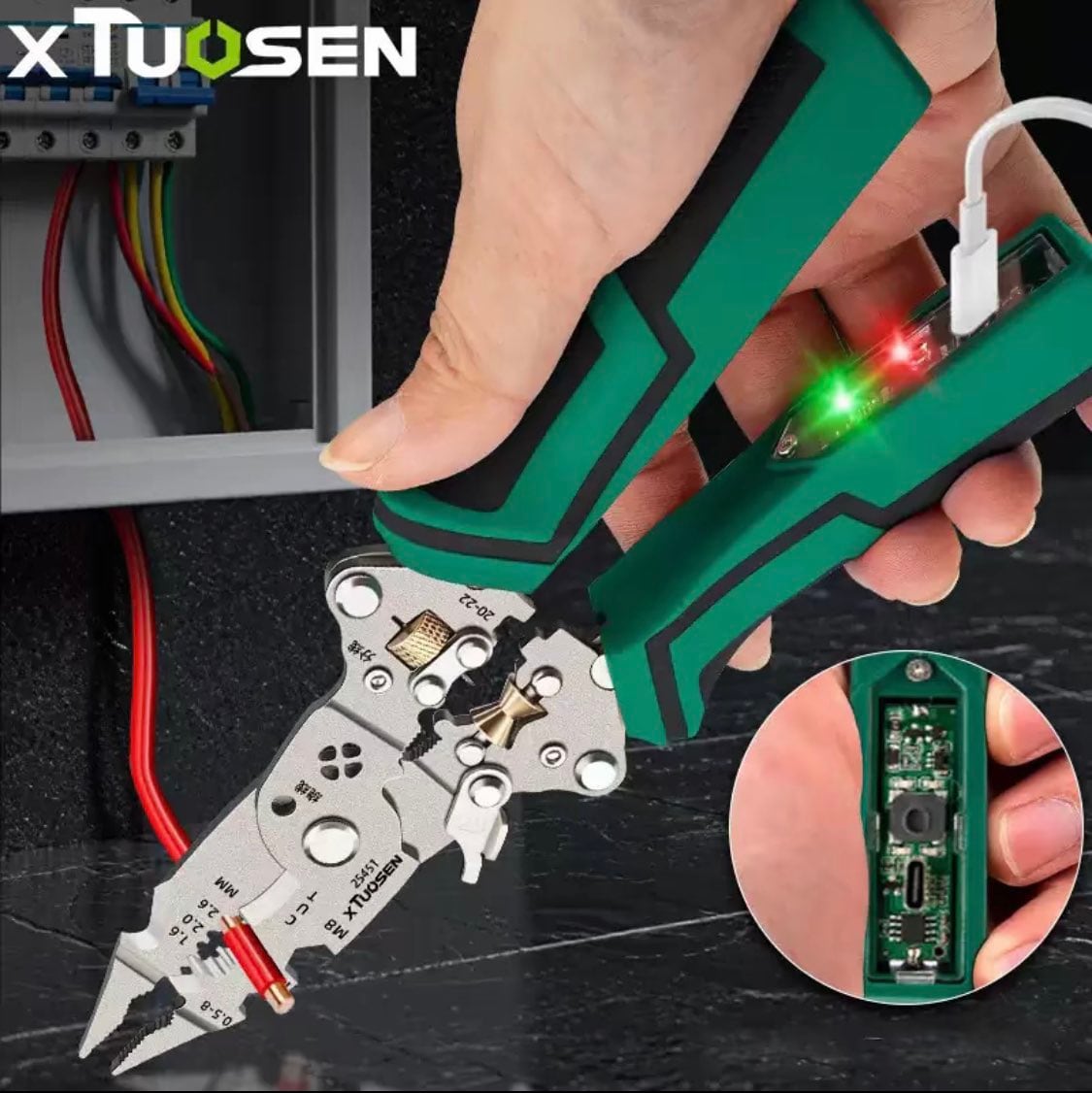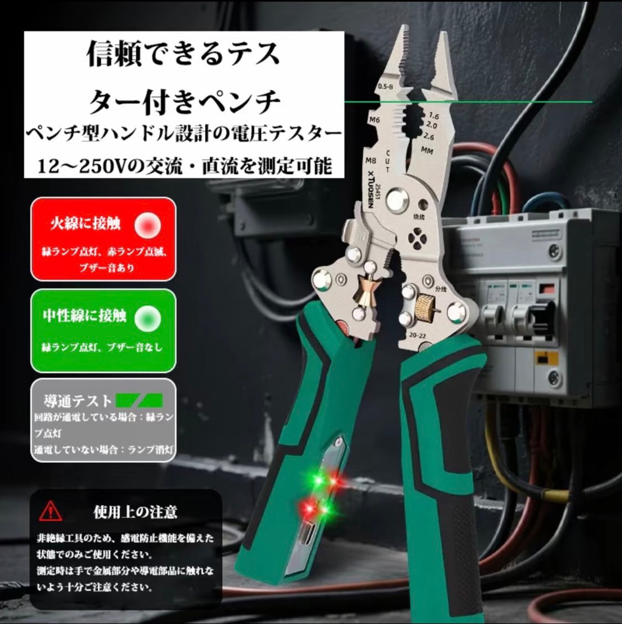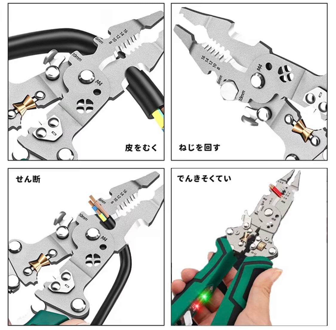 B6.10 in 1多機能電気技師プライヤーワイヤーストリッパー折りたたみ絶縁ハンドルワイヤークリンパーストリッパーツイスター電圧テスター 告灯付き緊急用プロフェッショナル電気工事用 オールインワンツール銅アルミニウムと鉄ワイ ヤーDIY修理 | 青潮ストア