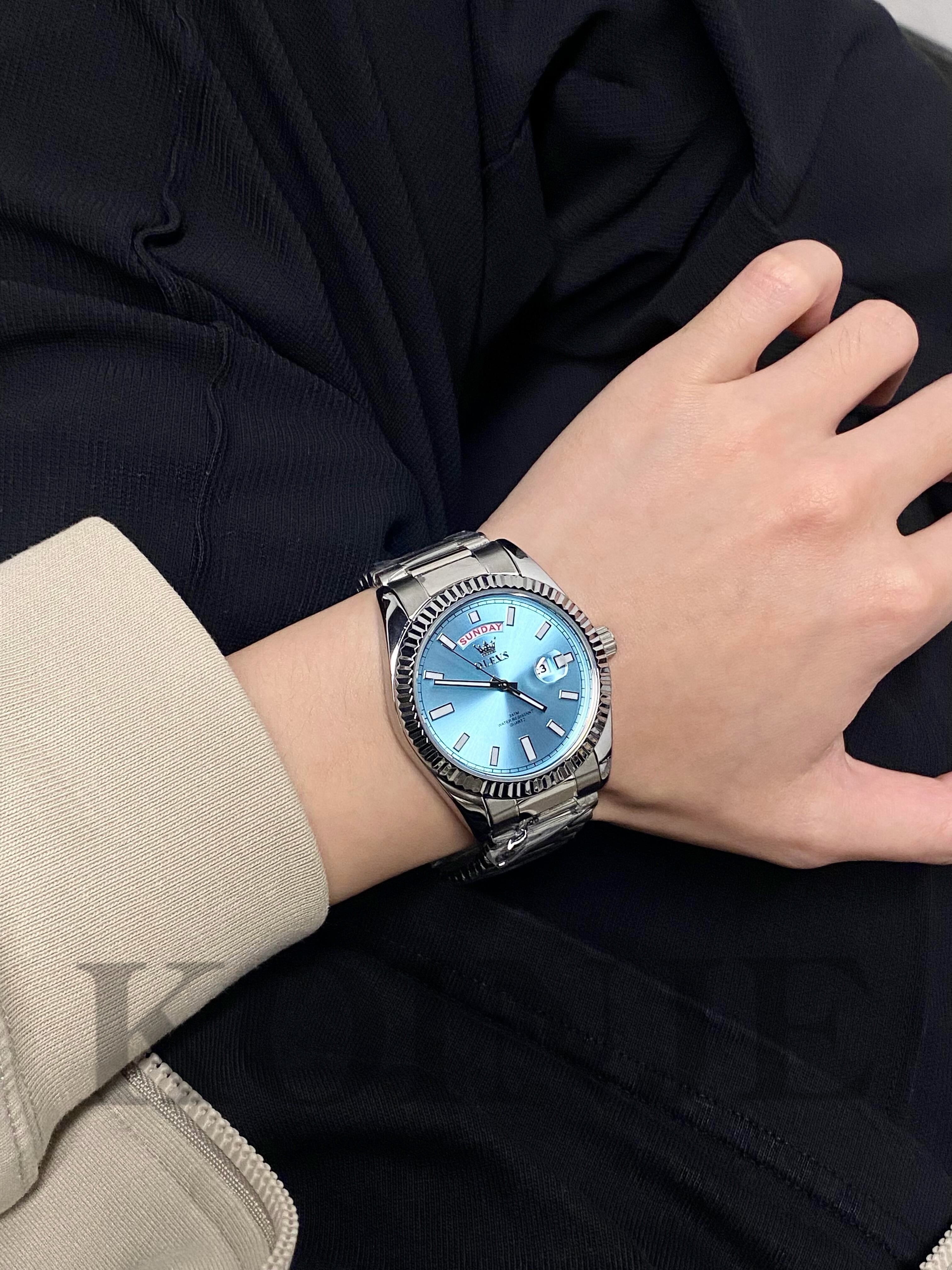 KOIN JE上質なティファニーブルーの腕時計|通勤用・防水・夜光針付き