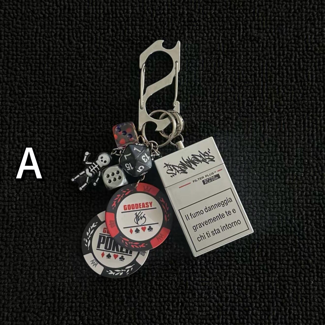 KOIN JE チップ&サイ組み合わせ携帯灰皿キーホルダー - ヴィンテージコーデ向け腰付けアクセサリー