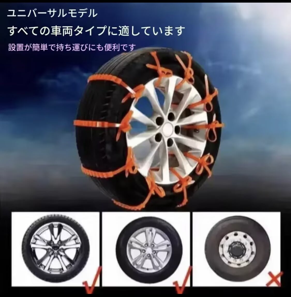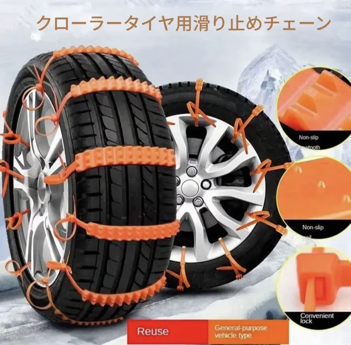 【緊急時用】:冬の旅行で雪や氷に遭遇した場合、これらのチェーンは運転に自信を与えます。
