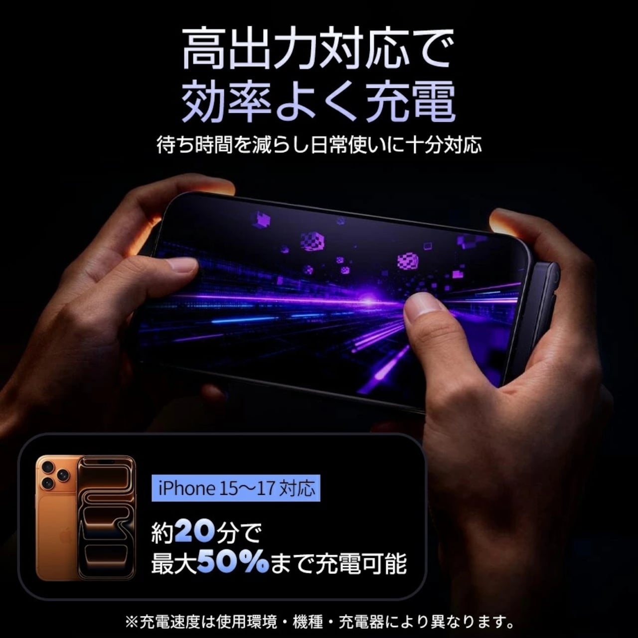 充電速度は、ご使用のデバイス、充電器、環境条件により異なります。
