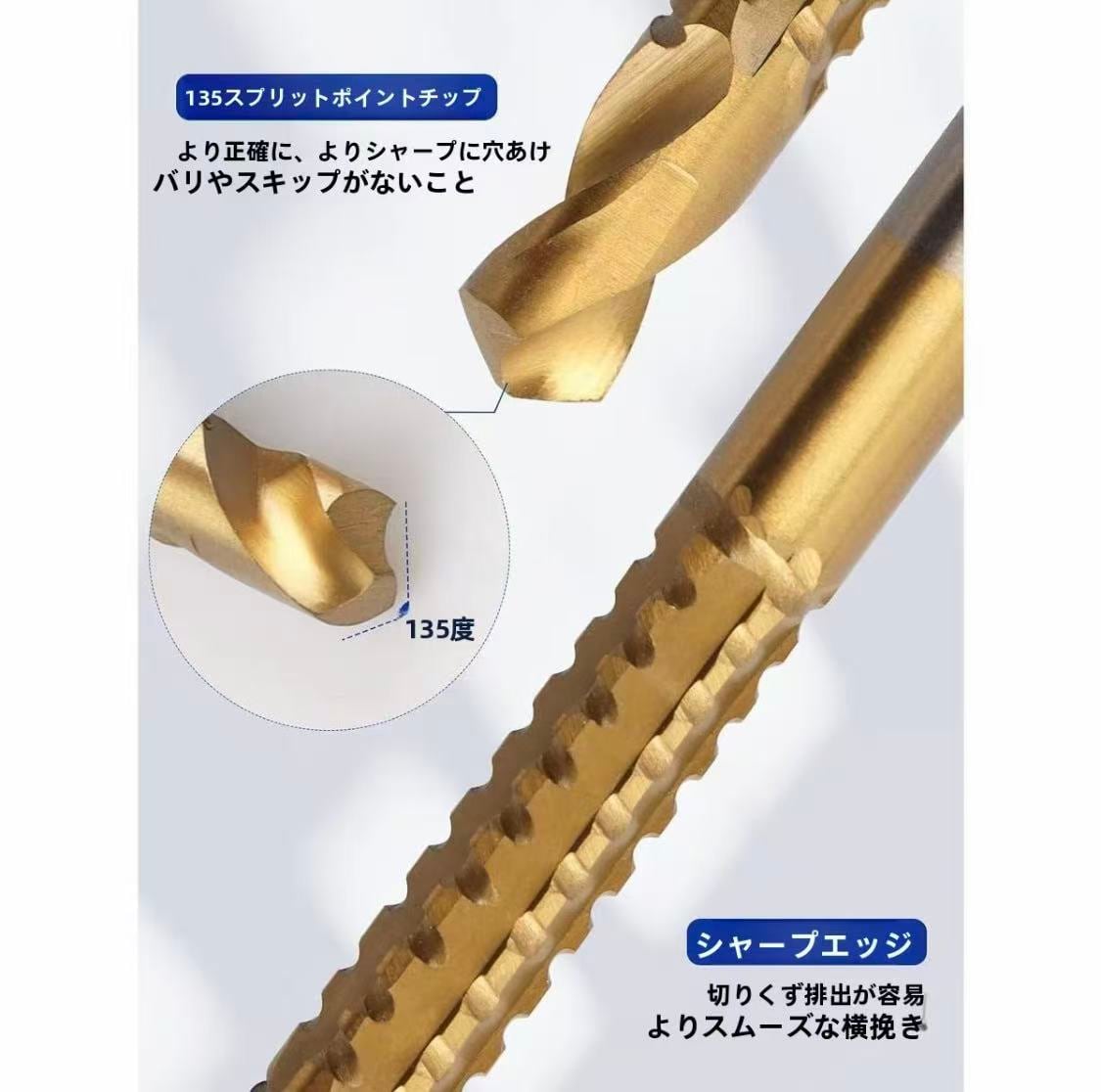 B22.チタンコーティングされたハイス鋼ツイストドリルビットの6個パック、3~8mmの歯付ききサイドカットドリルビット、木エツール、プラスチック、金属、木材の穴あけに適しています。