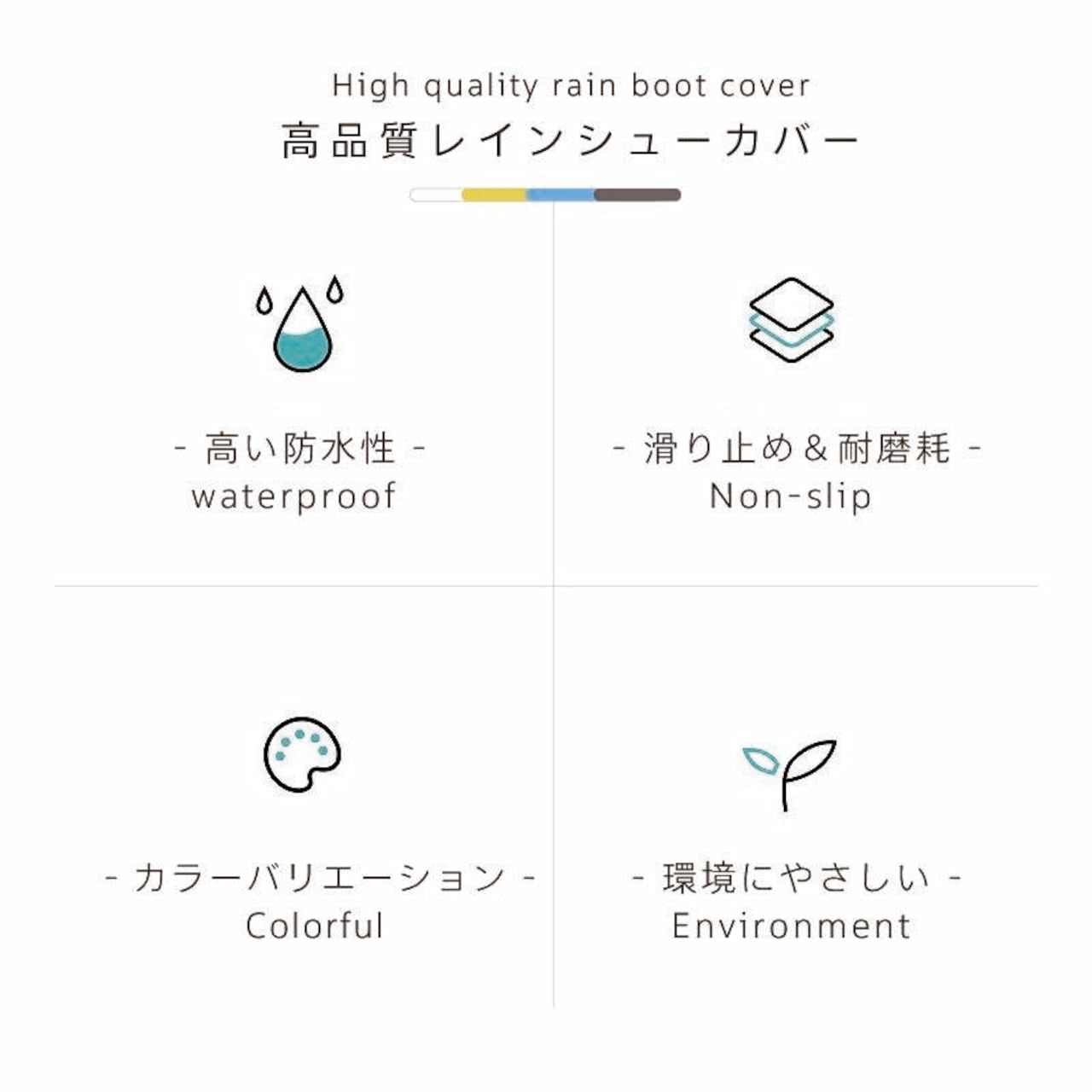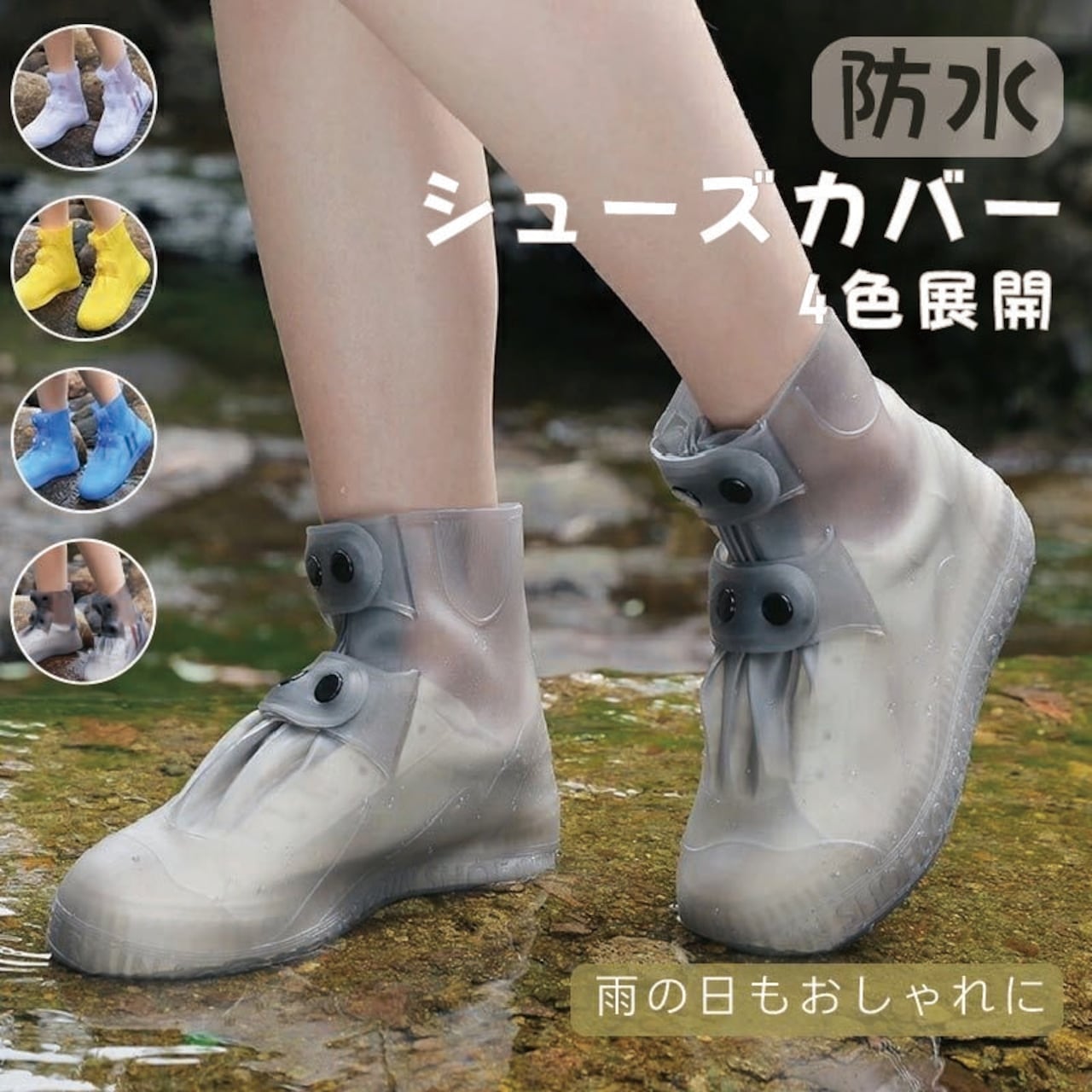 4色展開で、コーディネートに合わせてお選びいただけます。軽量設計で歩きやすく、滑り止め加工済みの靴底で雨の日も安心です。