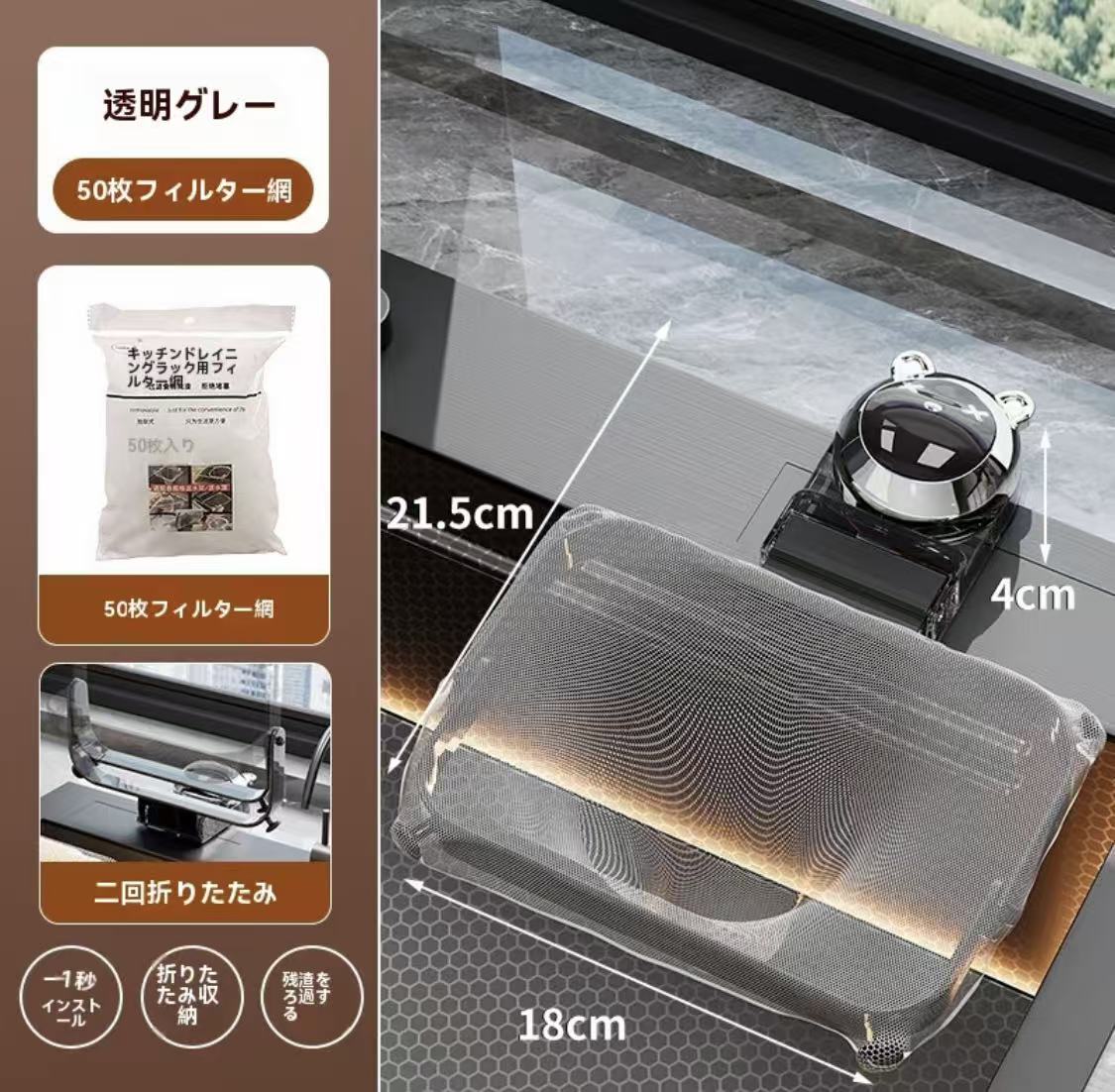 Y39.三角コーナー いらず強力吸盤 サンカクコーナ 一水切りネット ホルダーシンクゴミ受けキッチン生ゴミ処理水切りネット 50枚付き 便利 なゴミ水切り、吸盤、シンクゴミ水切り、水切りラック、ごみスタンド、省スペースのキッチン用品、ゴミ箱吸盤 ストッキング深型キッチンドレイン三角コーナー水切り ラック水切り ネットホルダー排水溝台所生ごみ受け