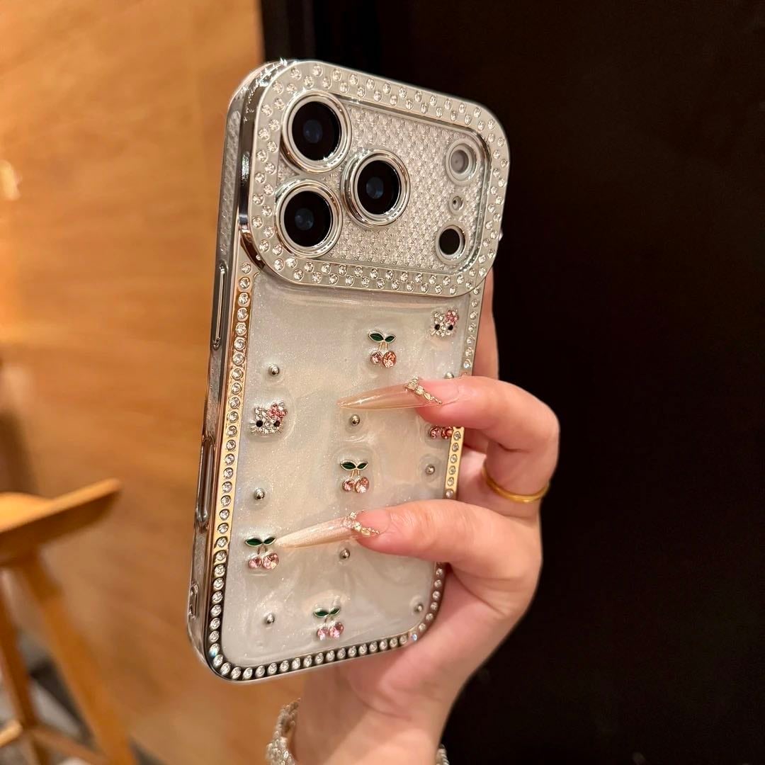 高級ダイヤモンドをあしらった立体チェリー iPhone対応