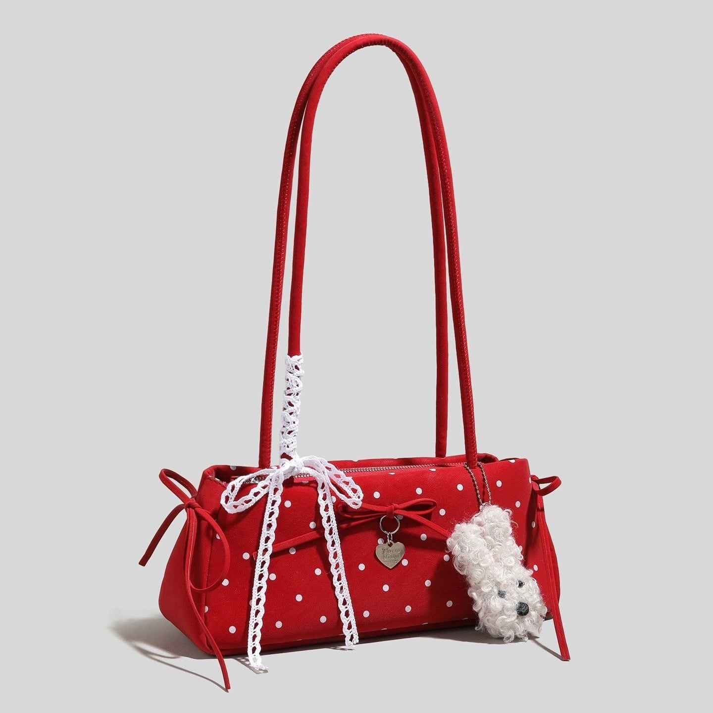 春・夏に使える万能ドット柄の韓国風リボン付きバゲットバッグ