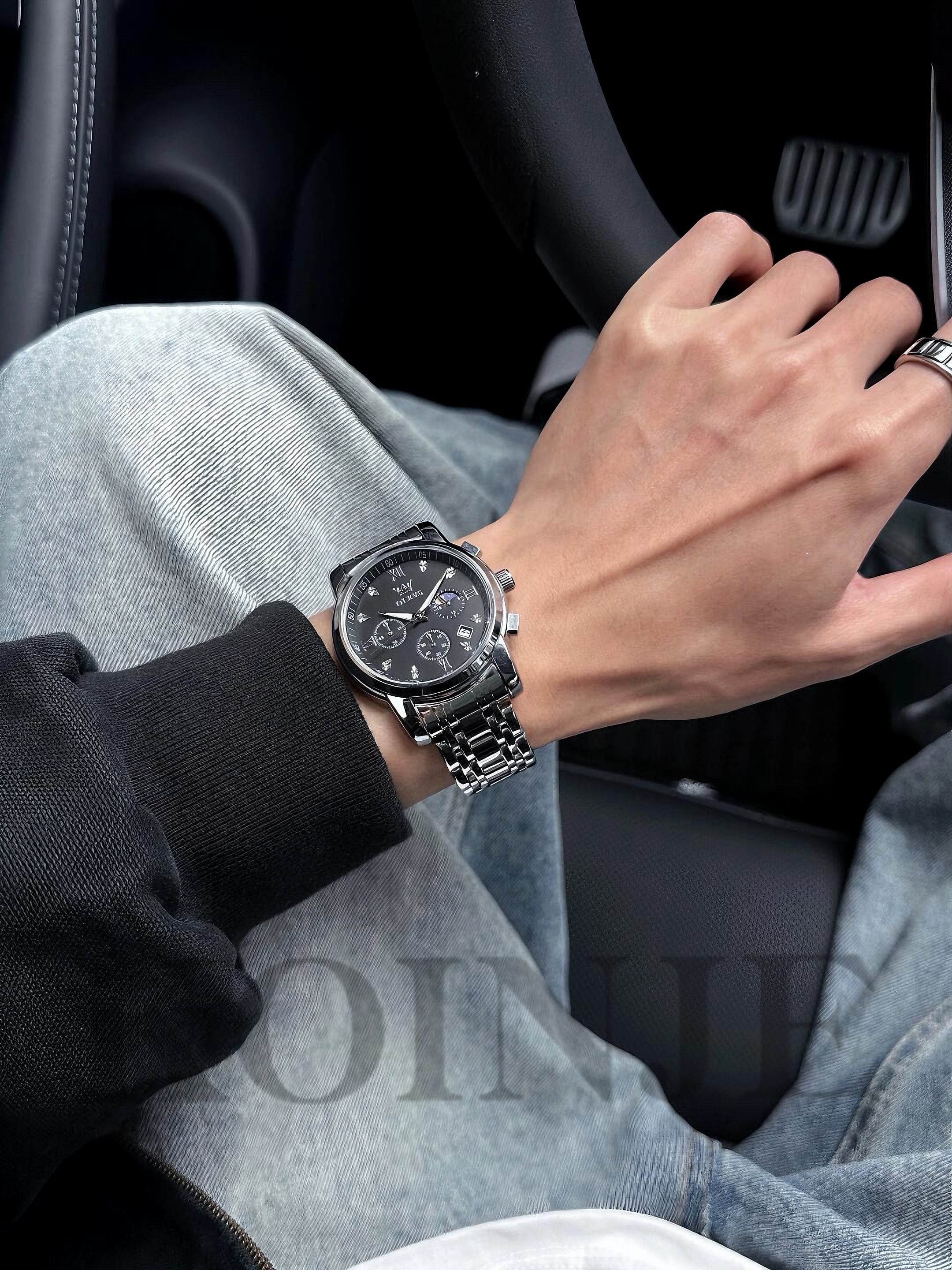 【KJ2858】定番の万能時計 夜光・ムーンフェイズ・クロノグラフ・日付表示 多機能腕時計