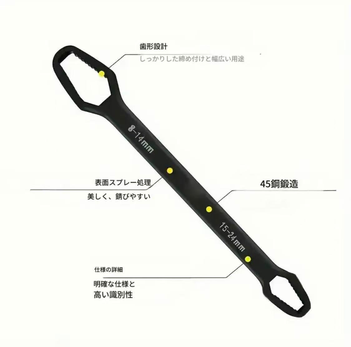 T2.1個、8~24mm対応の新型多機能両端レンチ。 家庭用・汎用タイプで自己締め可能、調整可能な特殊形状。持ち運びやすい携帯用ハンドシール。多用途、ブラック色。厚手の3.5mmトルクスレンチ、調整可能自己締め式デュアルヘッドスプレッシャー | 青潮ストア