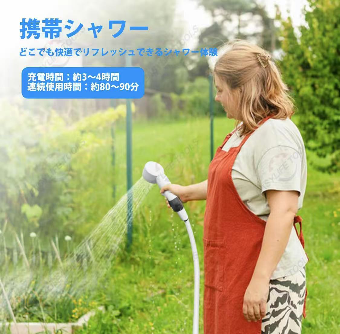 T3.充電式ポータブルシャワーアウトドア用多段階 モード 電動シャワーポンプキャンプ・登山・ 旅行・車中泊対応